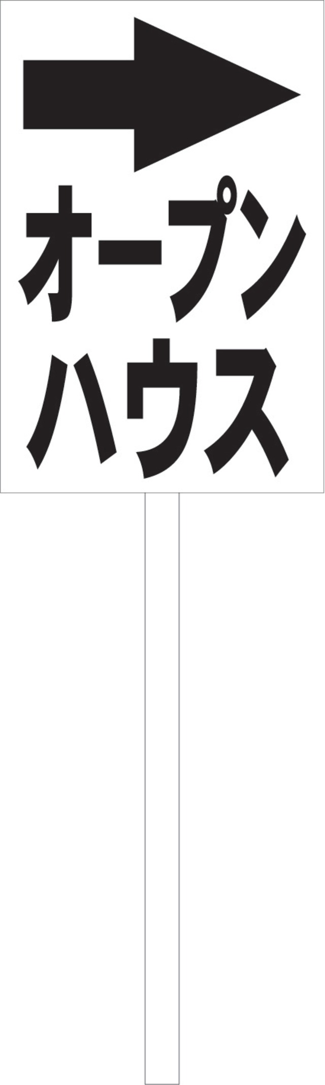 シンプル立札看板 「オープンハウス右折(黒)」不動産 屋外可(面板 約H45.5cmxW30cm)全長1m