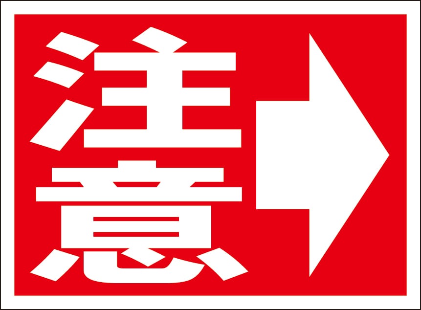 シンプル看板「注意(矢印右)」屋外可・送料無料