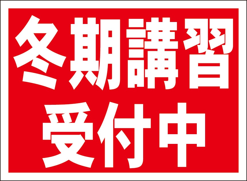シンプル看板「冬期講習受付中(赤)」屋外可・送料無料