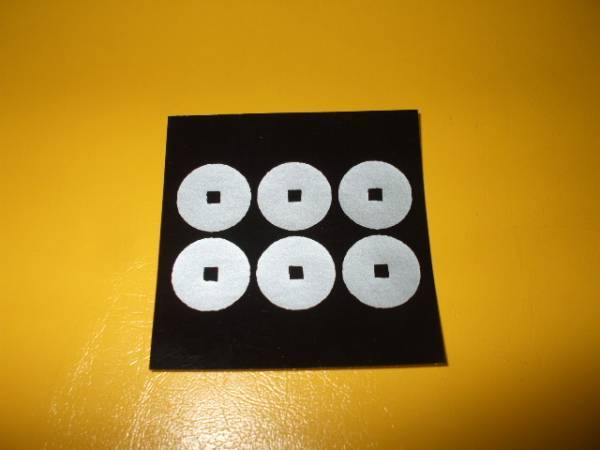 家紋ステッカー「真田六文銭」黒地銀3枚セット<屋外可・送料無料>