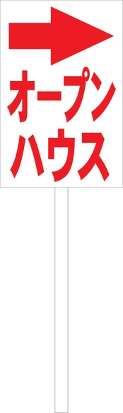 シンプル立札看板 「オープンハウス右折(赤)」不動産 屋外可(面板 約H45.5cmxW30cm)全長1m