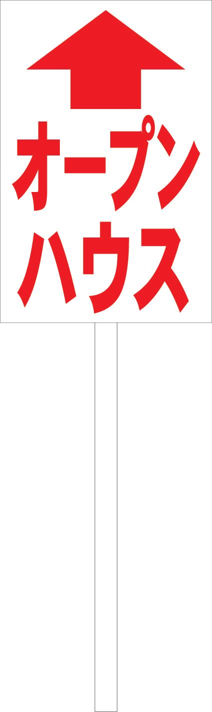 シンプル立札看板 「オープンハウス直進(赤)」不動産 屋外可(面板 約H45.5cmxW30cm)全長1m