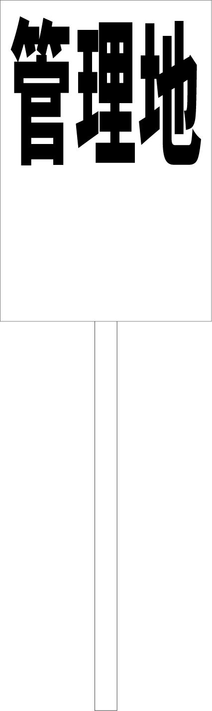 シンプル立札看板 「管理地(黒)余白付」不動産 屋外可(面板 約H45.5cmxW30cm)全長1m