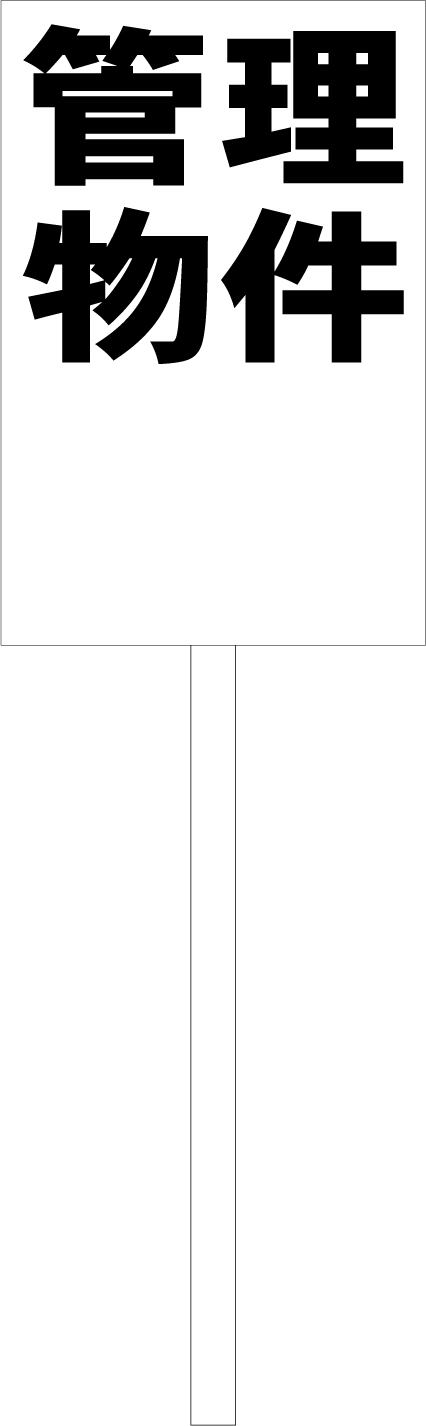 シンプル立札看板 「管理物件(黒)余白付」不動産 屋外可(面板 約H45.5cmxW30cm)全長1m