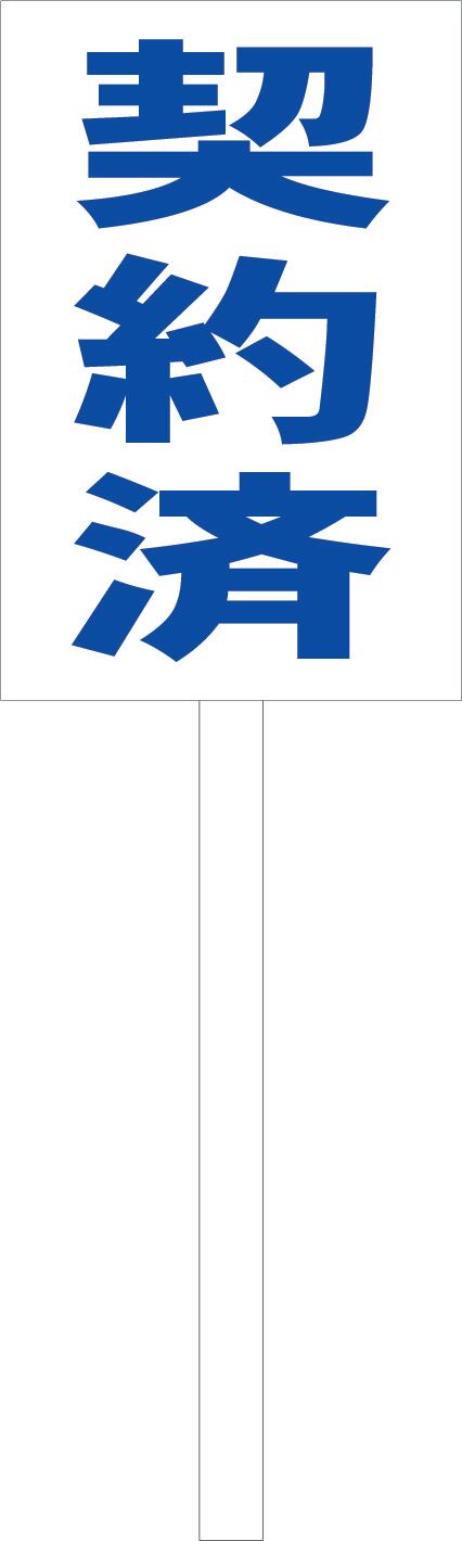 シンプル立札看板 「契約済(青)」不動産 屋外可(面板 約H45.5cmxW30cm)全長1m