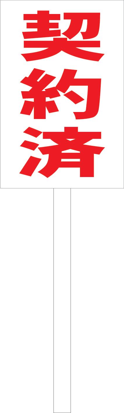 シンプル立札看板 「契約済(赤)」不動産 屋外可(面板 約H45.5cmxW30cm)全長1m