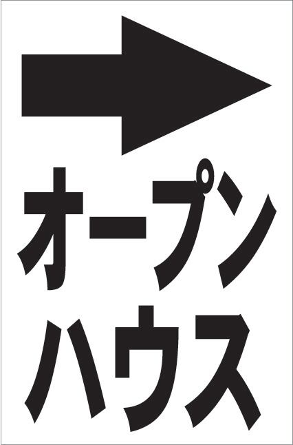 シンプル縦型看板 「オープンハウス右折(黒)」不動産 屋外可(約H45.5cmxW30cm)