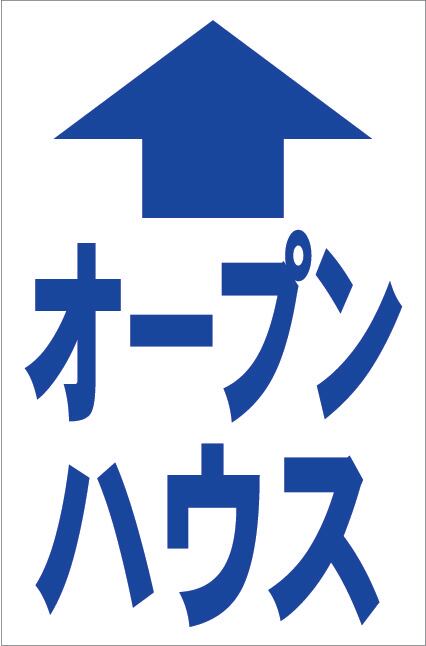シンプル縦型看板 「オープンハウス直進(青)」不動産 屋外可(約H45.5cmxW30cm)