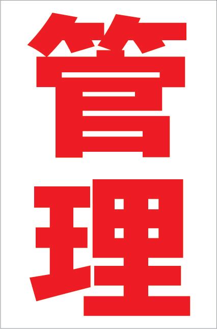 シンプル縦型看板 「管理(赤)」不動産 屋外可(約H45.5cmxW30cm)