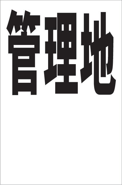 シンプル縦型看板 「管理地(黒)余白付」不動産 屋外可(約H45.5cmxW30cm)