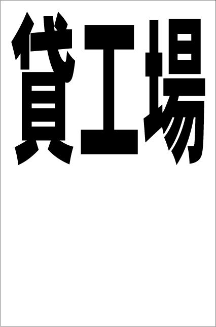 シンプル縦型看板 「貸工場(黒)余白付」不動産 屋外可(約H45.5cmxW30cm)
