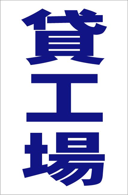 シンプル縦型看板 「貸工場(青)」不動産 屋外可(約H45.5cmxW30cm)