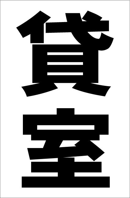 シンプル縦型看板 「貸室(黒)」不動産 屋外可(約H45.5cmxW30cm)