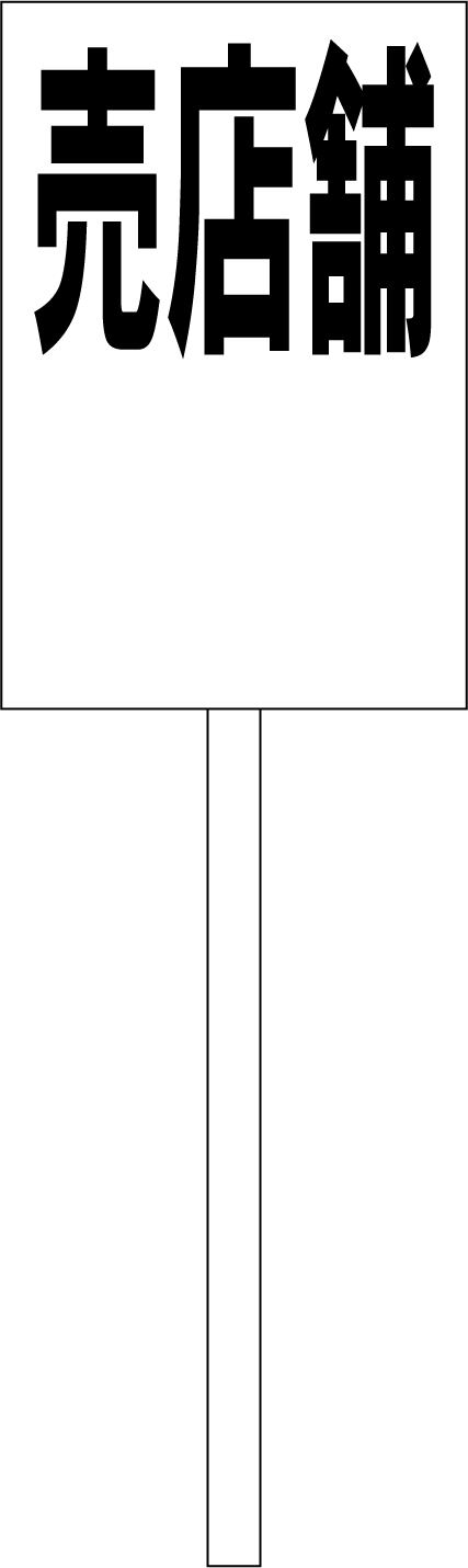 シンプル立札看板 「売店舗(余白付)黒」不動産 屋外可(面板 約H45.5cmxW30cm)全長1m