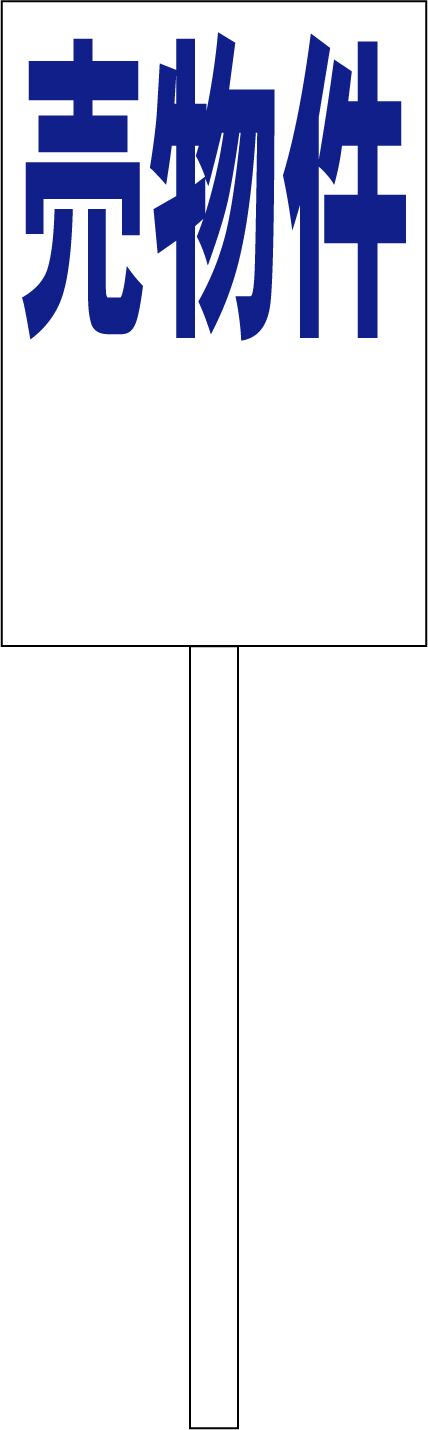 シンプル立札看板 「売物件(余白付)青」不動産 屋外可(面板 約H45.5cmxW30cm)全長1m