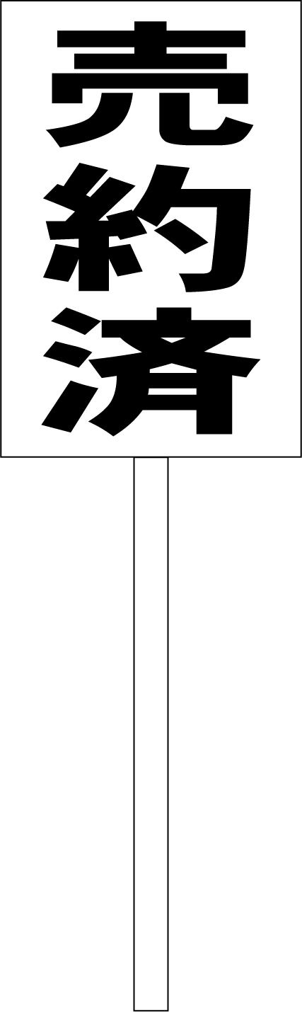 シンプル立札看板 「売約済(黒)」不動産 屋外可(面板 約H45.5cmxW30cm)全長1m