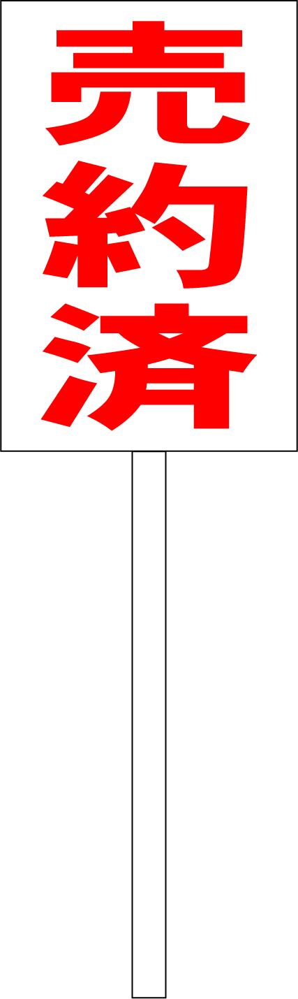 シンプル立札看板 「売約済(赤)」不動産 屋外可(面板 約H45.5cmxW30cm)全長1m