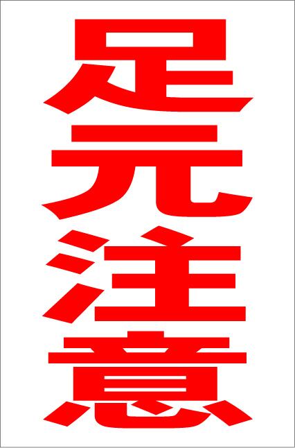 シンプル縦型看板 「足元注意(赤)」工場・現場 屋外可
