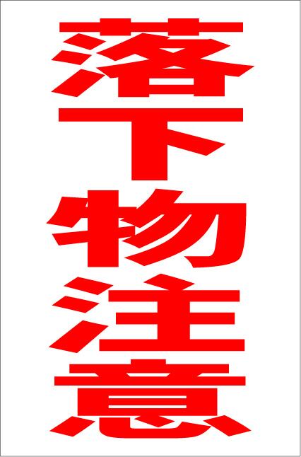 シンプル縦型看板 「落下物注意(赤)」工場・現場 屋外可
