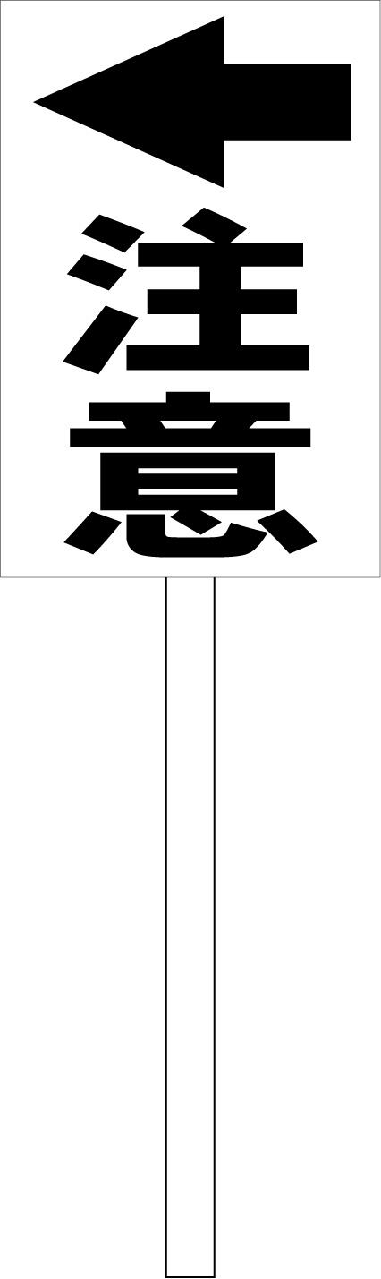 シンプル立札看板 「注意←(黒)」工場・現場 屋外可(面板 約H45.5cmxW30cm)全長1m