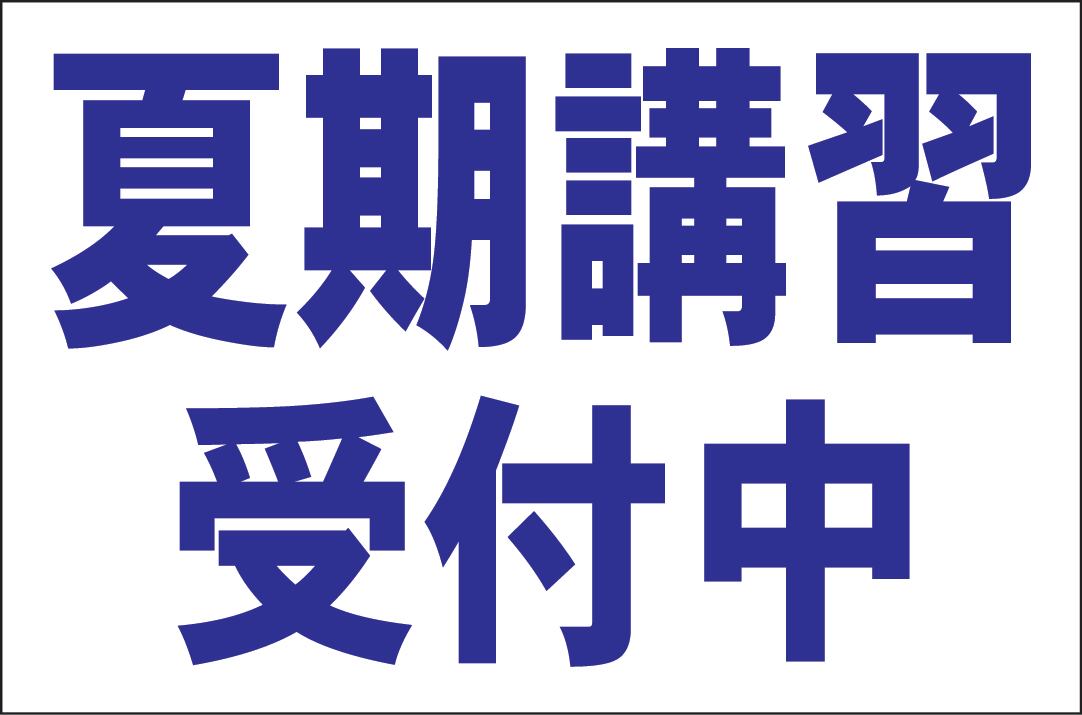 シンプル看板 L「夏期講習受付中(紺)」<スクール・塾・教室> 屋外可(約H60cmxW91cm)