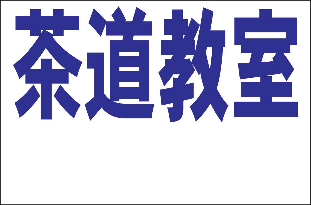 シンプル看板 L「茶道教室 余白付(紺)」<スクール・塾・教室> 屋外可(約H60cmxW91cm)