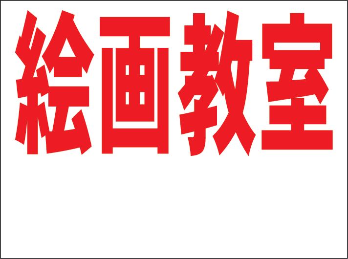 シンプル看板M「絵画教室 余白付(赤)」<スクール・塾・教室>屋外可(約H45cmxW60cm)