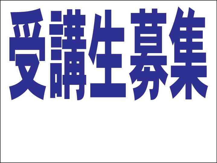 シンプル看板M「受講生募集 余白付(紺)」<スクール・塾・教室>屋外可(約H45cmxW60cm)
