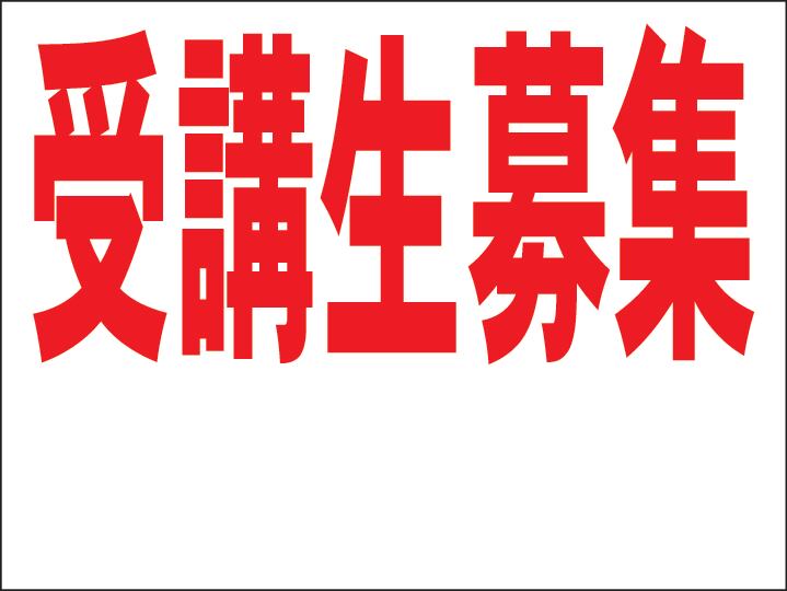 シンプル看板M「受講生募集 余白付(赤)」<スクール・塾・教室>屋外可(約H45cmxW60cm)