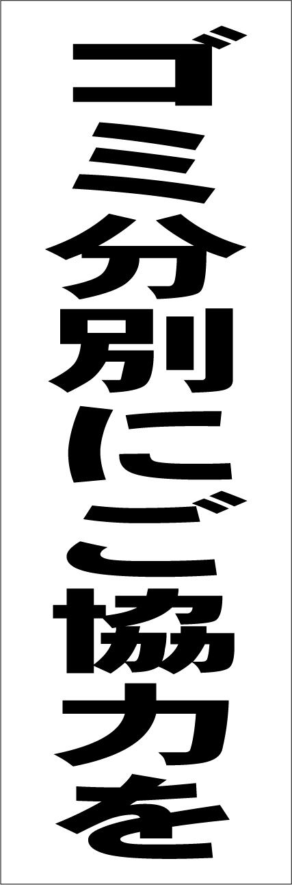 シンプル短冊型看板ロング「ゴミ分別にご協力を(黒)」【その他】屋外可