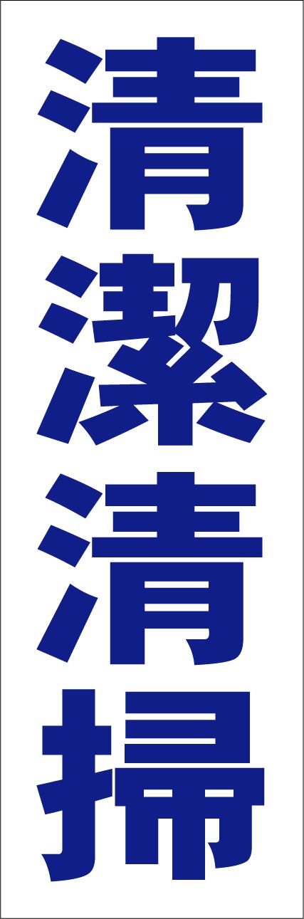 シンプル短冊型看板ロング「清潔清掃(青)」【工場・現場】屋外可