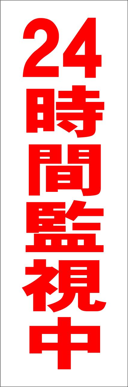 シンプル短冊型看板ロング「24時間監視中(赤)」【防犯・防災】屋外可