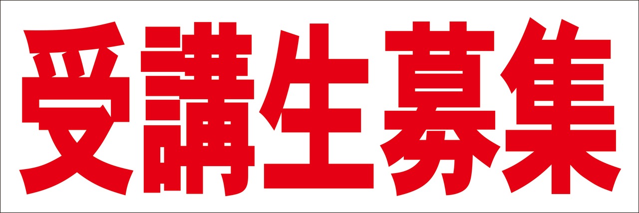 シンプル横型看板ロング「受講生募集(赤)」【スクール・教室・塾】屋外可