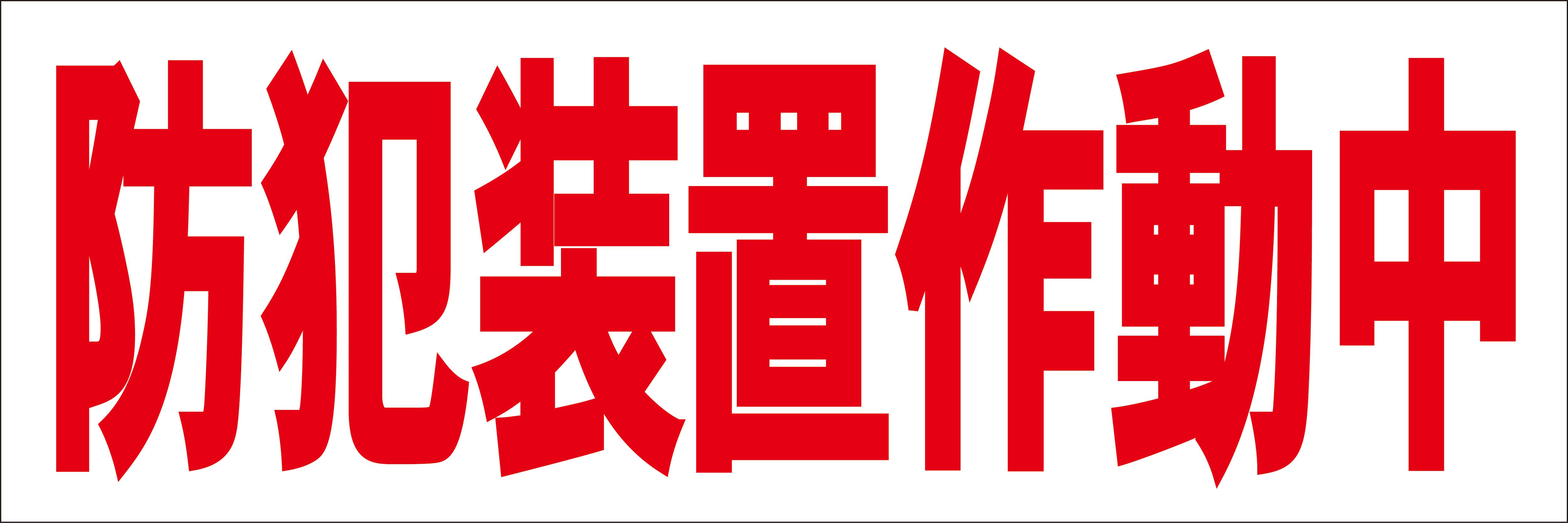 シンプル横型看板ロング「防犯装置作動中(赤)」【防犯・防災】屋外可