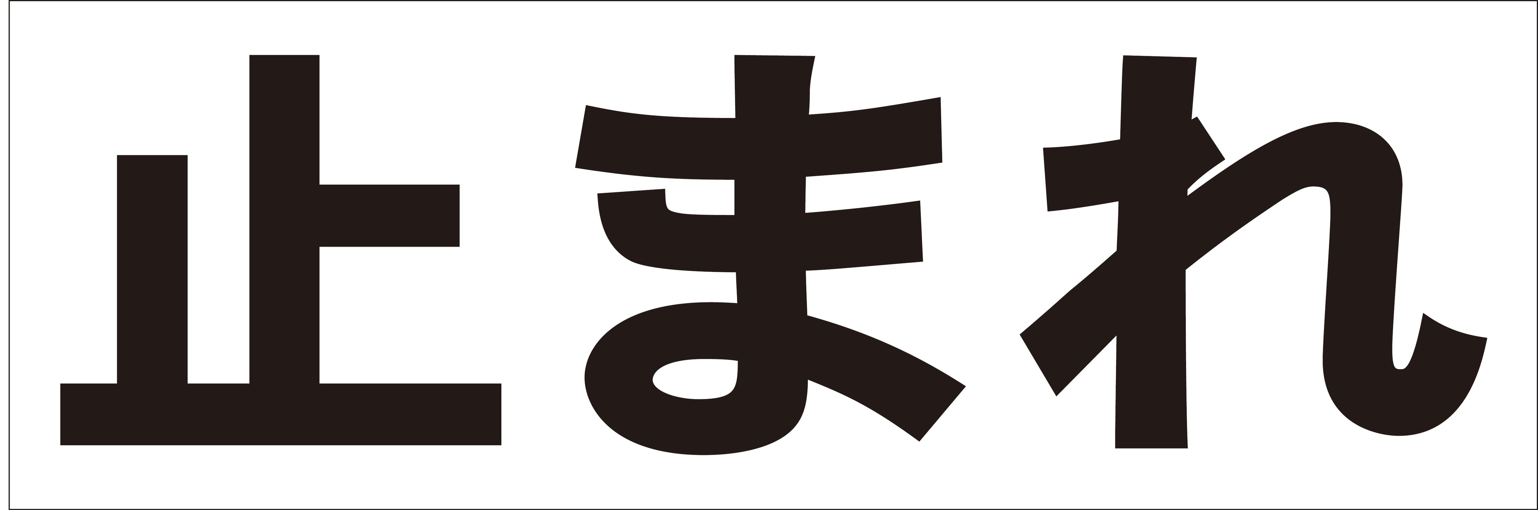 シンプル横型看板ロング「止まれ(黒)」【工場・現場】屋外可