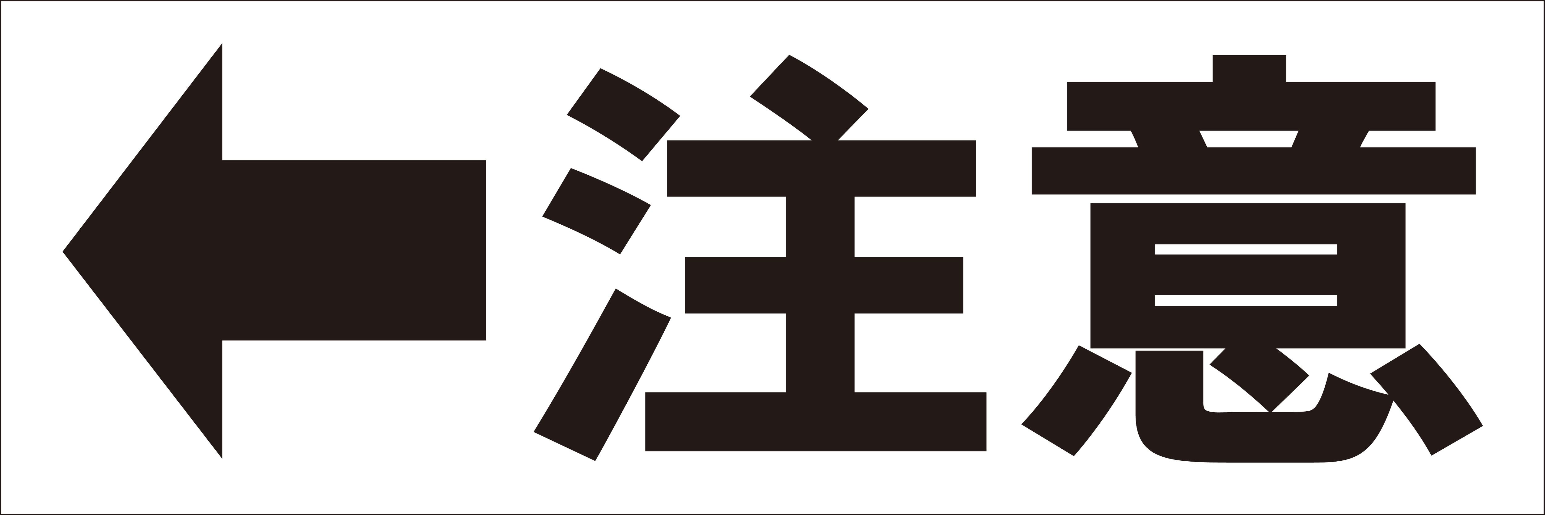 シンプル横型看板「注意左矢印(黒)」【工場・現場】屋外可
