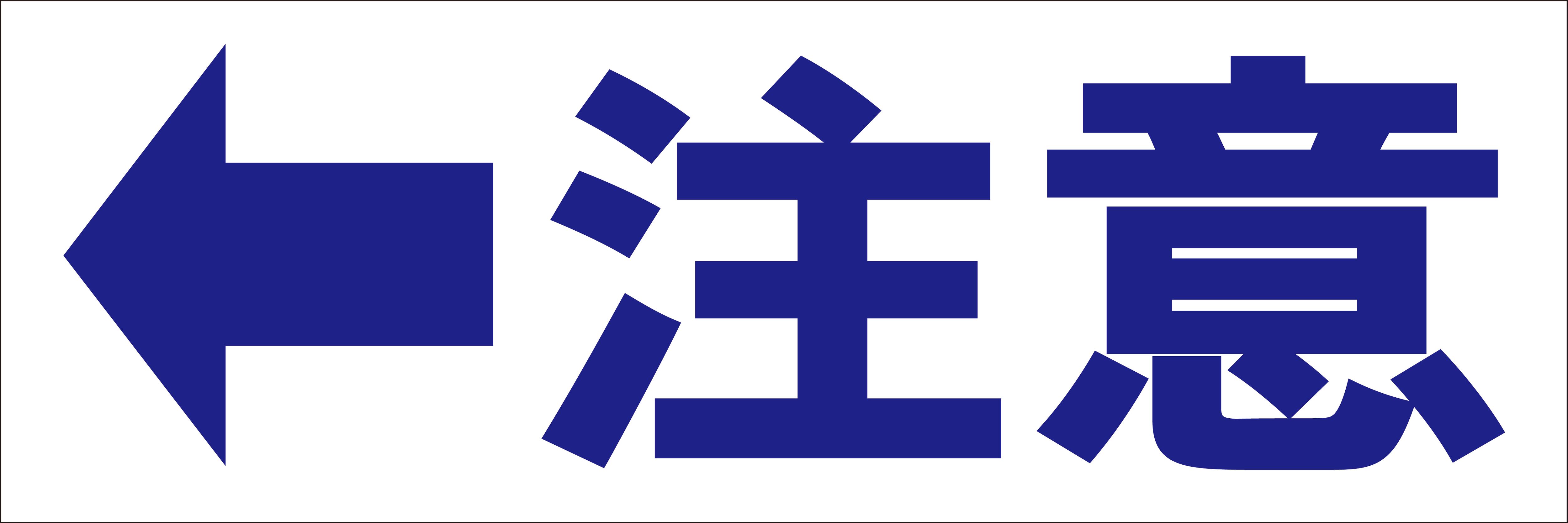 シンプル横型看板「注意左矢印(青)」【工場・現場】屋外可
